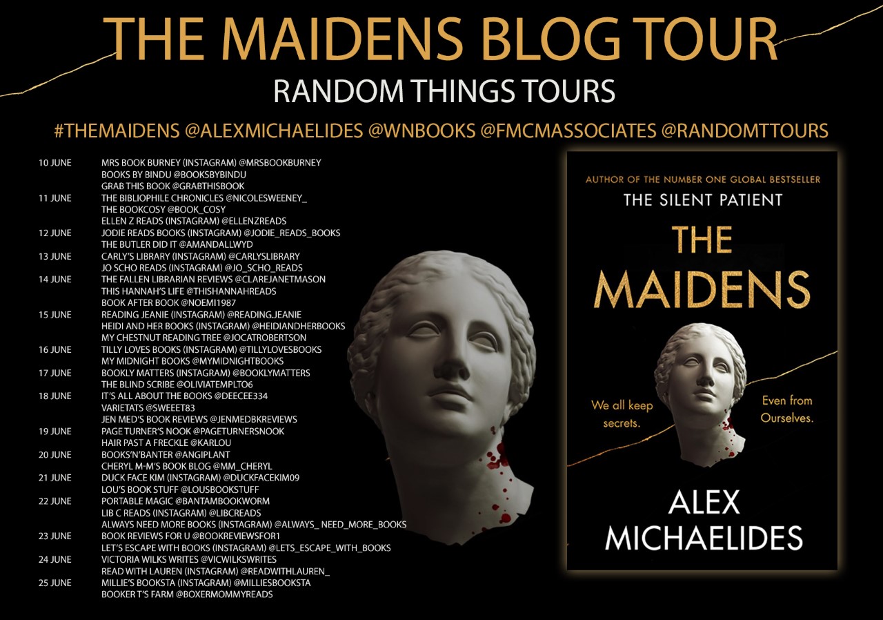 I am thrilled to welcome you on my stop for the blog tour of The Maidens, the new compelling novel by Alex Michaelides.