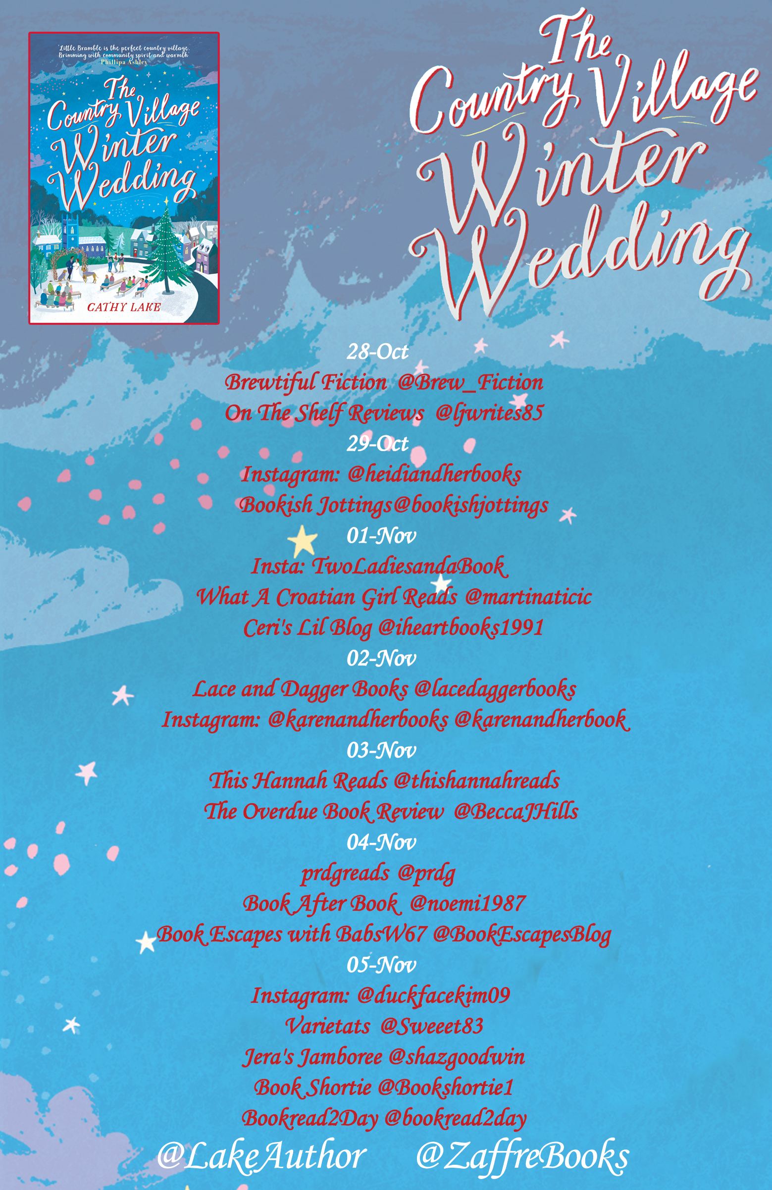 I am delighted to welcome you on my stop for the blog tour of The Country Village Winter Wedding, the entertaining new novel by Cathy Lake.