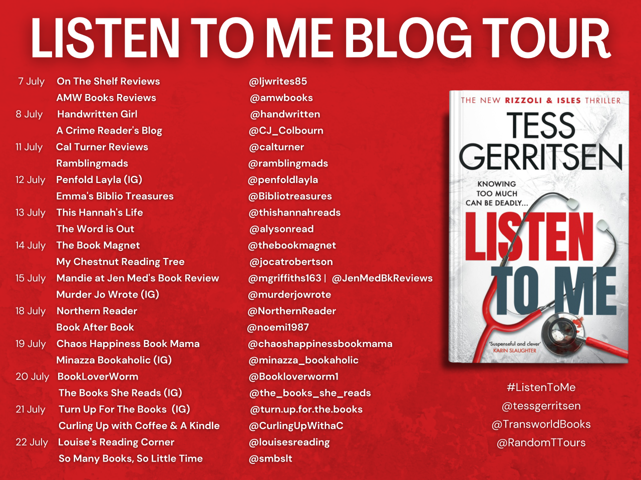 I am really excited to welcome you on my stop for the blog tour of Listen to Me, the gripping new novel by Tess Gerritsen.